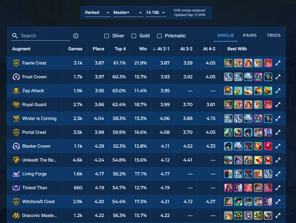 That's not to say that you never take Blaster Crest or Faerie Crown in this meta. Both Dishsoap and Frodan have had lots of success in their games taking the "worse" emblem augments at 2-1. Understanding when to take them will be a critical way you can separate yourself from the pack in this meta.